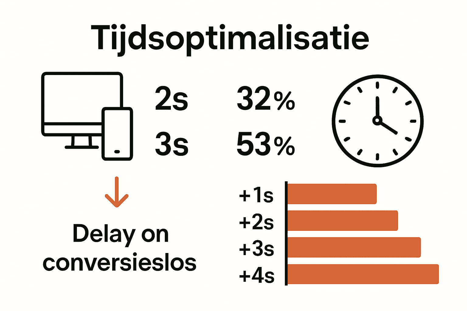 | Laadtijd is cruciaal voor conversies | Slechte laadsnelheid kan leiden tot een aanzienlijk conversieverlies, waarbij bezoekers al bij een vertraging van één seconde afhaken. |