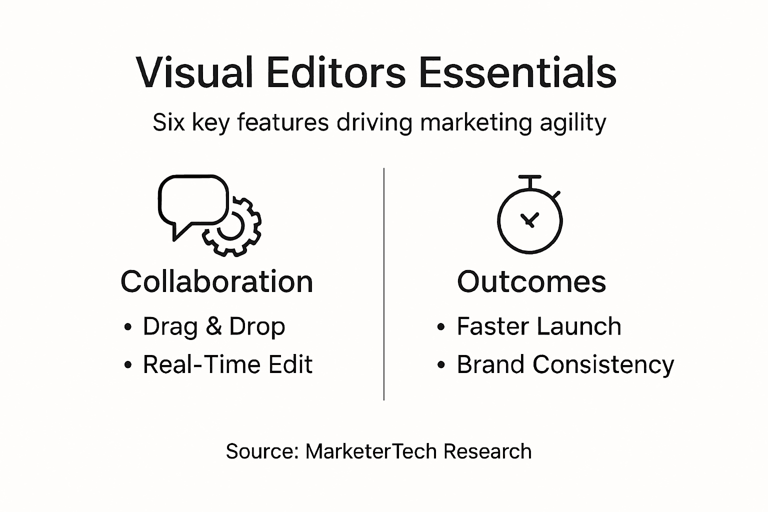 This summary outlines how visual editors impact marketing agility and outcomes: